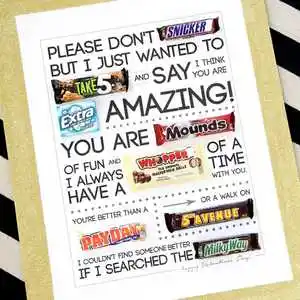 A poster made with candies is a sweet and thoughtful gift for your boyfriend. Create a personalized sign featuring his favourite treats and candy bars with a heartfelt message. Its a unique and delicious way to show him how much you care. A poster made with his favourite treats makes the perfect last-minute DIY gift for a boyfriend.