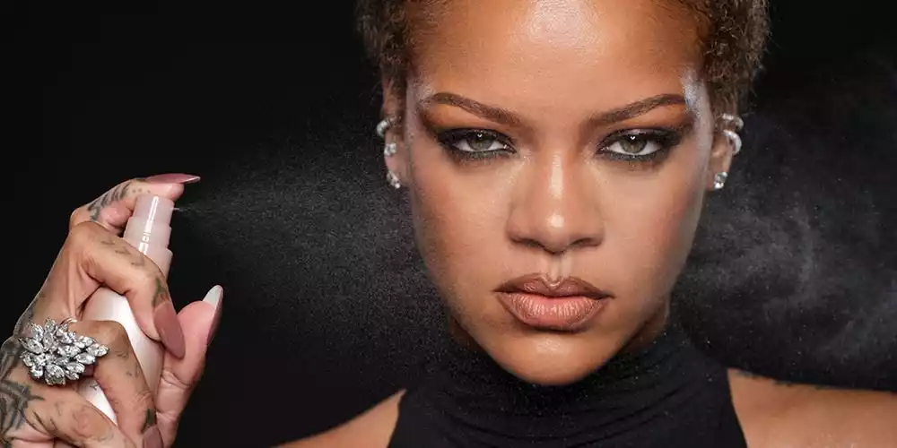 Rihanna's latest campaign for Fenty Beauty introduces the "You Mist Makeup-Extending Setting Spray," designed to lock in makeup for up to 12 hours. The formula includes skin-beneficial ingredients like wild thyme extract, which hydrates the skin and offers protection against environmental stressors.