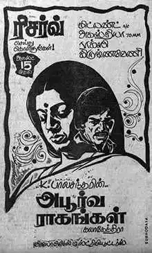It is a 1975 Tamil love drama movie that was produced in India and was written and directed by K. Balachander. Sundarrajan Srividya Jayasudha Kamal Haasan and Nagesh portray the main characters and Rajinikanth making his feature film debut plays a supporting role. The focus of the movie is on Prasanna (Haasan) who develops feelings for the much older Bhairavi (Srividya) while Ranjani (Jayasudha) Bhairavi's daughter is drawn to Prasanna's father Mahendran (Sundarrajan).