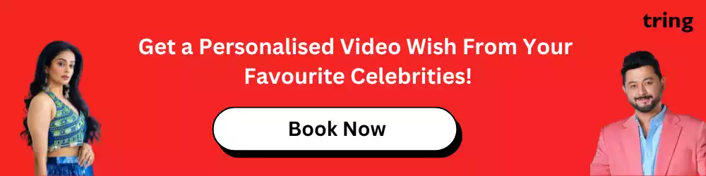 वरती आंतरराष्ट्रीय महिला दिनानिमित्त तुमच्या आयुष्यातील महिलांना शुभेच्छा पाठवाआणि त्याचा अनुभव घ्या. तुमच्या प्रिय व्यक्तींना त्यांच्या आवडत्या टीव्ही आणि बॉलीवूड अभिनेत्यांची wish म्हणून सेलिब्रिटी shoutoutपेक्षा चांगले काय आहे? रोमांचक बरोबर! ट्रिंगद्वारे तुम्ही 12000 हून अधिक सेलिब्रिटींमधून वैयक्तिकृत सेलिब्रिटी व्हिडिओ संदेश, Instagram DM बुक करण्यासाठी किंवा तुमच्या आवडत्या सेलिब्रिटीला भेटण्यासाठी आणि शुभेच्छा देण्यासाठी निवडू शकता! या महिला दिनी, तुमच्या आयुष्यातील महिलांना ही एक प्रकारची शुभेच्छा देऊन प्रभावित करा जी अत्यंत परवडणारी देखील आहे!